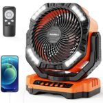 تستخدم مروحة التخييم الخاصة بنا بطارية قابلة لإعادة الشحن بسعة كبيرة 7800 ميلي أمبير في الساعة، وهي غير مقيدة بالأسلاك. يمكن أن تعمل المروحة لمدة 4.5 ساعة أو تشغيل المصباح بعد 20 ساعة من شحنها بالكامل، مما يمنحك برودة تدوم طويلاً هذا الصيف!